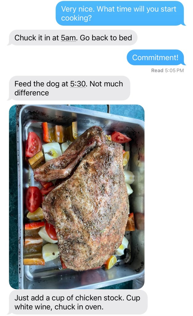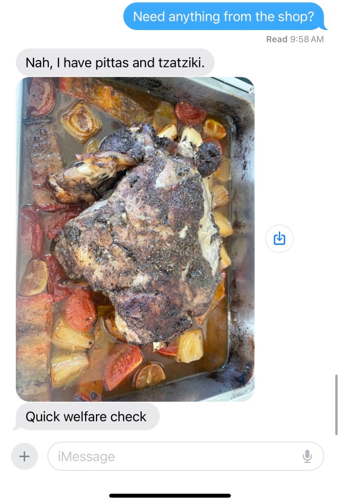 Thats what’s happened this weekend. My brother has taken the base recipe from Scrummy Lane, selected a nice leg of lamb and kicked on.